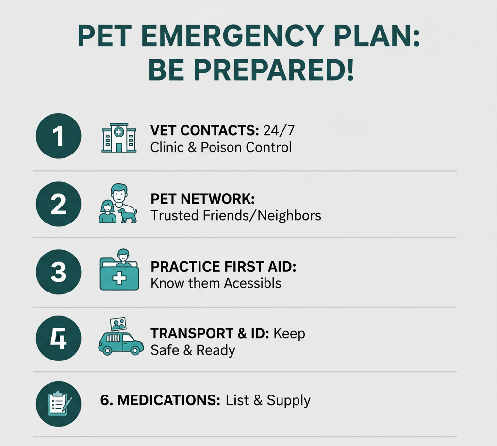 Be proactive list emergency vet contacts, prepare transportation, and practice basic first aid steps. A clear Emergency Pet Care plan ensures you can act fast and effectively during crises.